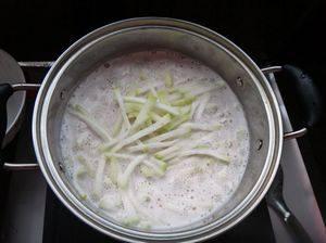 - 锅中加水烧开,放入切好的瓠瓜条焯水,煮至瓠瓜变软。